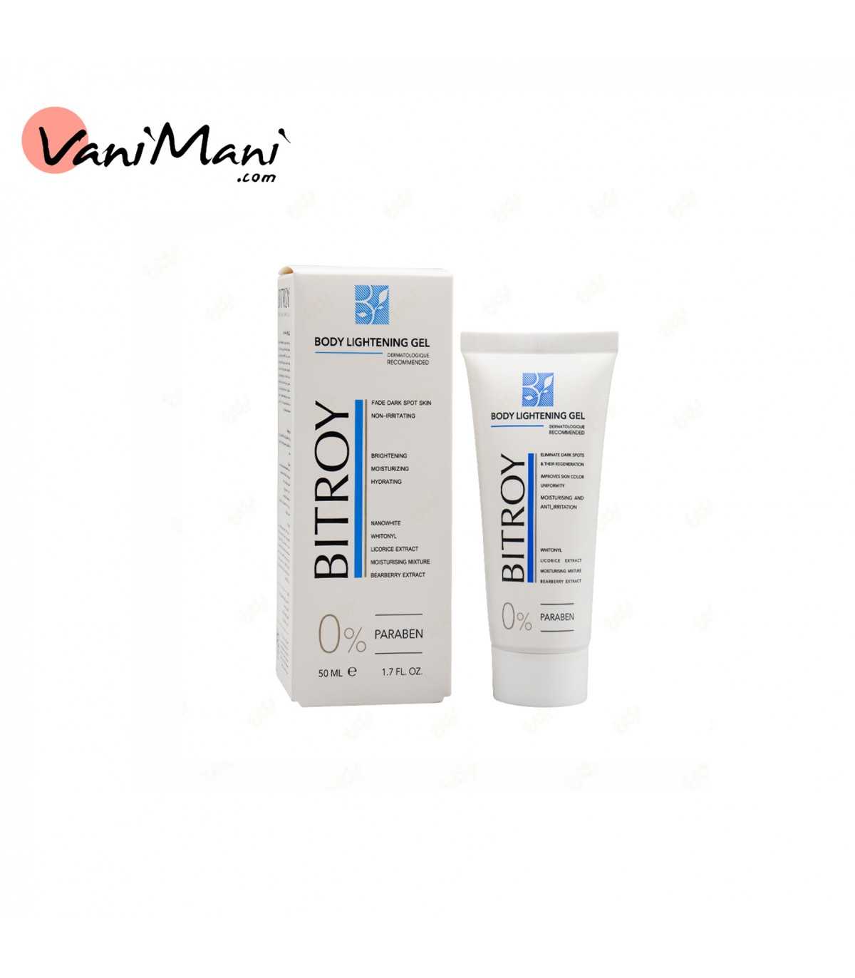 ژل روشنکننده بدن بیتروی (Bitroy Body Whitening Gel) محصولی تخصصی برای کاهش تیرگی و لکهای پوست بدن است که بهویژه برای ناحیه زیر بغل، آرنج، زانو، کشاله ران و بیکینی طراحی شده است.